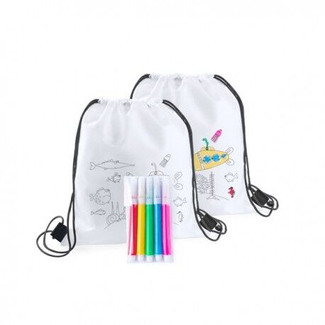 Rucsac din material nețesut cu 5 carioci colorate. Dimensiuni: 250×300 mm si metoda de printare T1 (8C, 150 × 80 MM) ,culoare Alb.