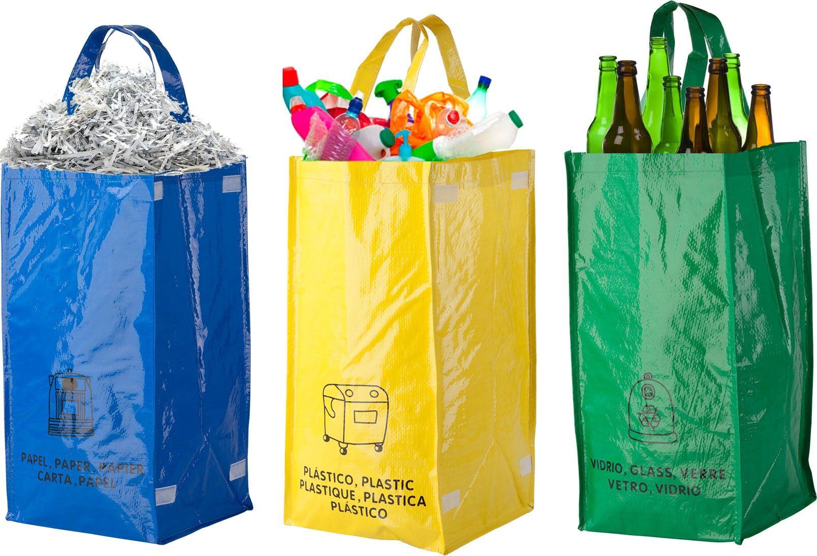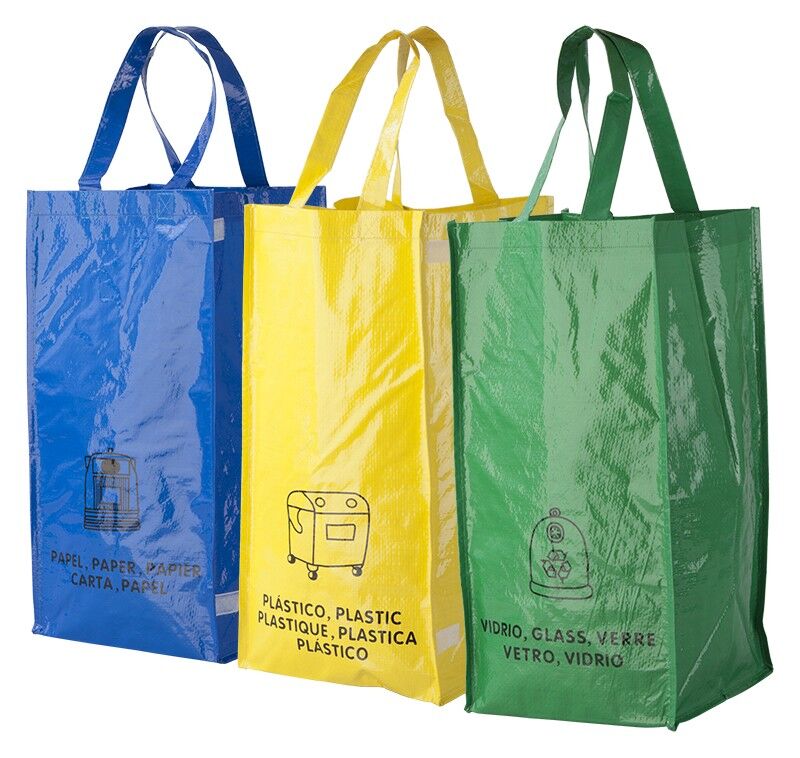 Saci plastificate, non-țesute, reciclabile pentru deseuri, set de 3 bucati