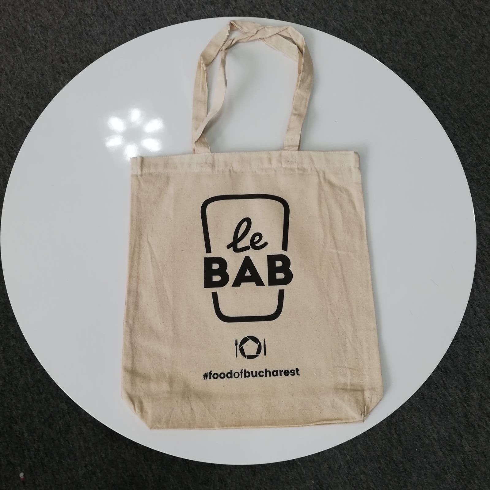 Sacosa 100% din bumbac aceasta poate fi purtat în mână sau pe umăr si are dimensiunile: 42 x 38 x 9 cm