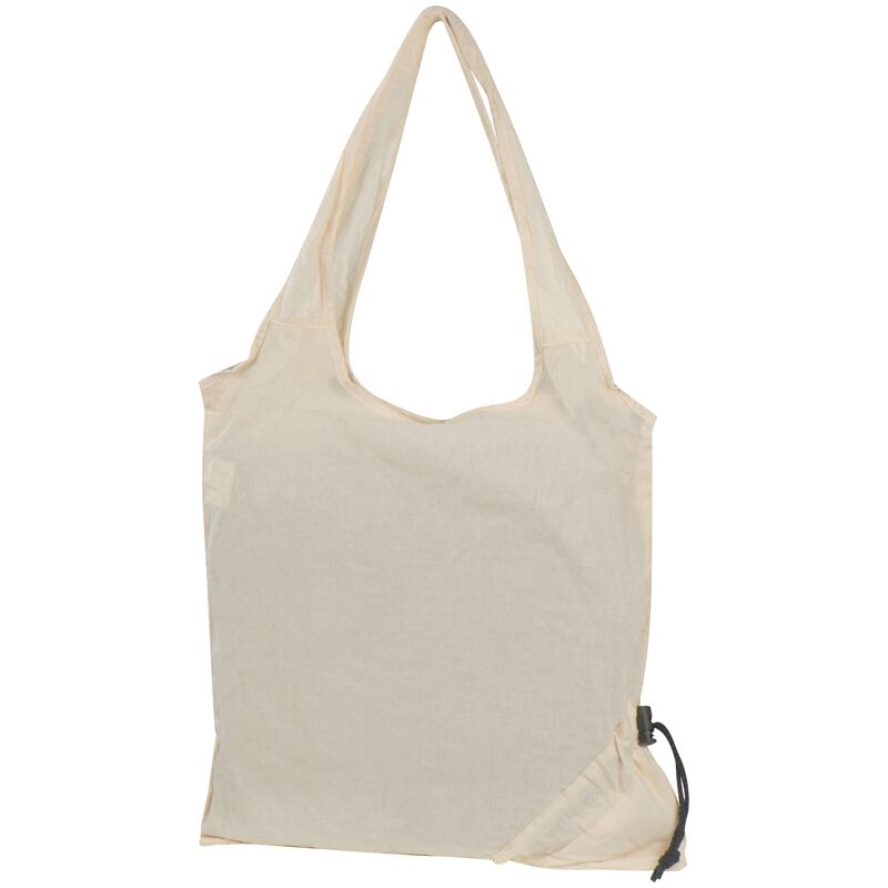Sacose din Bumbac pliabila de 100 g/m² culoarea natur . Acesta sacose are manere lungi, iar intr-un colt al sacosei este prevazut cu un saculet pentru satrangerea sacosei. Ideala pentru a fi luat in geanta , borseta si folosita la cumparaturile zilnice