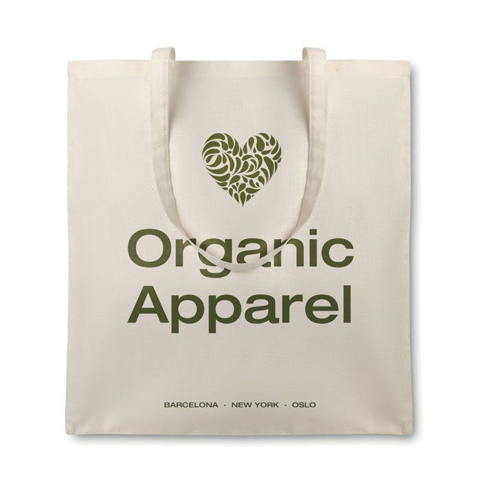 Sacoșă cumpărături din bumbac organic, ce are manere lungi si densitatea de 105 gr/m².